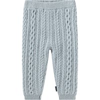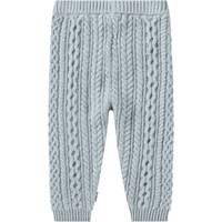 Hellblaue Wollhosen für die Kleinen im Zopfmuster. Elastischer Bund und gerippte Bündchen an den Knöcheln.