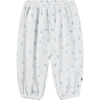 Blaue Hosen für die Kleinen aus Bio-Baumwolle mit fröhlichem Druck. Sie haben eine lockere Passform, einen elastischen Bund und Gummizug an den Knöcheln, was das An- und Ausziehen erleichtert. Die Hosen sind leicht und bequem, was sie perfekt für den täglichen Gebrauch macht.