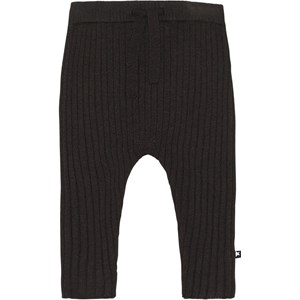 Shadow ist eine gestrickte Babyhose in brauner Rippqualität. Die Hose hat Bänder in der Taille und Falten an der Unterseite der Beine. Kombinieren Sie die Hose mit der passenden Bluse.
