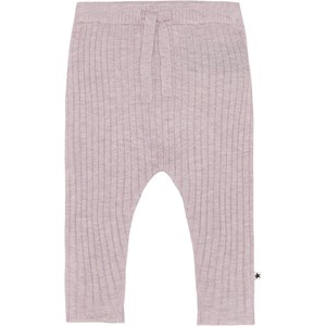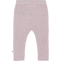 Shadow ist eine gestrickte Babyhose in helllilla Rippqualität. Die Hose hat Bänder in der Taille und Falten an der Unterseite der Beine. Kombinieren Sie die Hose mit der passenden Bluse.