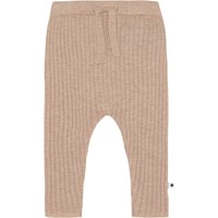 Shadow ist eine gestrickte Babyhose in beiger Rippqualität. Die Hose hat Bänder in der Taille und Falten an der Unterseite der Beine. Kombinieren Sie die Hose mit der passenden Bluse.