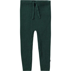 Dunkelgrüne gestrickte Hosen für die Kleinen aus Viskose/Kaschmir. Mit geripptem Effekt und elastischem Bund sowie Kordelzug an der Taille für Komfort und einfaches Anziehen.