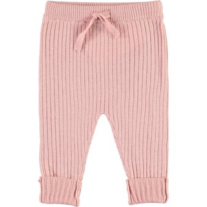 Shadow ist eine gestrickte Babyhose in Rosa. Die Hose hat eine Bindeband in der Taille und Umschlag am Beinende.