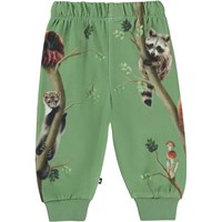 Grüne Hose im Allover-Print für die Kleinen. Der Druck zeigt verschiedene Tiere bei einem Abenteuer in den Ästen des Lebensbaums. Diese Hose besteht aus 100% Baumwolle, hat einen Gummizug und Bänder in der Taille und Rippbündchen an den Füßen. Kombinieren Sie evt. die Hose mit dem Shirt, Eloy, im Aufdruck „Living Tree“ für das perfekte Set.