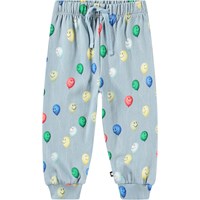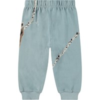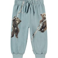 Hellblaue Jogginghosen für die Kleinen aus Öko-Baumwolle mit einer ungefütterten Innenseite, die sie an heißen Tagen angenehm kühl macht. Die Hose hat einen elastischen Bund und eine Kordel, sowie gerippte Bündchen an den Beinen. Sie lässt sich leicht an- und ausziehen und bietet viel Bewegungsfreiheit. An den Seiten ist ein Druck von zwei Bärenjungen, die Birkenbäume erklimmen.