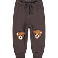 Weiche Öko-Baumwollhosen für die Kleinen. Die Hosen sind dunkelbraun mit weichen braunen Bären auf den Knien. Sie haben einen elastischen Bund mit Kordelzug und gerippte Bündchen an den Knöcheln. Sie sind leicht an- und auszuziehen und bieten viel Bewegungsfreiheit. Kombinieren Sie sie mit dem passenden Sweatshirt für ein komplettes Outfit.