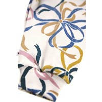 Weiche Hosen für die Kleinen aus Öko-Baumwolle. Die Hosen sind cremefarben mit einem Druck bunter Schleifen. Sie haben einen elastischen Bund mit einer Kordel und gerippte Bündchen an den Knöcheln. Sie sind leicht an- und auszuziehen und bieten viel Bewegungsfreiheit. Kombinieren Sie sie mit dem passenden Sweatshirt für ein komplettes Outfit.