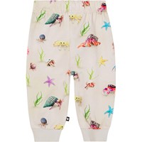 Sandfarbene Jogginghose für die Kleinen aus Öko-Baumwolle. Die Hose hat einen Gummizug und Bänder in der Taille sowie gerippte Kanten an den Beinen. Die Hose lässt sich leicht an- und ausziehen und bietet viel Bewegungsfreiheit. Die Hose hat einen farbenfrohen Aufdruck mit süßen Krebsen, Schnecken und Pflanzen vom Meeresgrund. Kombinieren Sie die Hose mit einem passenden Pullover und erhalten Sie ein weiches Sweat-Set.