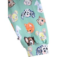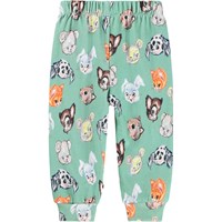 Weiche Öko-Baumwollhosen für die Kleinen. Die Hosen sind grün mit einem Aufdruck von gezeichneten Tieren. Sie haben einen elastischen Bund mit Kordelzug und gerippte Bündchen an den Knöcheln. Sie lassen sich leicht an- und ausziehen und bieten viel Bewegungsfreiheit. Dieser Stil hat eine aufgeraute Innenseite, was bedeutet, dass er angenehm warm zu tragen ist. Kombinieren Sie ihn mit dem passenden Sweatshirt für ein komplettes Outfit.