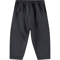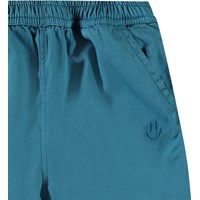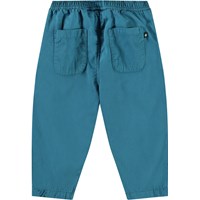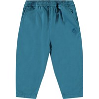 Hosen aus Öko-Baumwolle für die Kleinen. Die Hosen haben eine lockere Passform, Vorder- und Gesäßtaschen und einen elastischen Bund, der das An- und Ausziehen erleichtert. Leicht und luftig. Die Hosen sind blau mit einem kleinen gestickten lächelnden Gesicht an der Tasche.