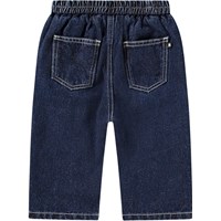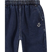 Blaue Jeanshosen für die Kleinen mit lockerer Passform und sowohl vorderen als auch hinteren Taschen. Die Hosen haben einen elastischen Bund, was sie leicht an- und ausziehbar macht. Sie sind leicht und luftig und bieten viel Bewegungsfreiheit. Außerdem gibt es eine kleine gestickte lächelnde Gesicht neben der Tasche.