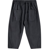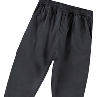 Hosen aus Öko-Baumwolle für die Kleinen. Die Hosen haben eine lockere Passform, Vorder- und Gesäßtaschen sowie einen elastischen Bund, der das An- und Ausziehen erleichtert. Leicht und luftig. Die Hosen sind schwarz.