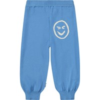 Blaue Strickhosen für die Kleinen aus Bio-Baumwolle mit lustigen Figuren. Sie haben gerippte Kanten an Taille und Knöcheln für eine bequeme Passform.