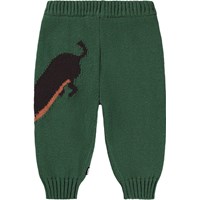 Dunkelgrüne Hosen für die Kleinen aus einem weichen Rippenstrick aus Baumwolle und Wolle mit einem Hund auf dem Oberschenkel. Die Hosen haben einen elastischen Bund, um sie leicht an- und ausziehen zu können, sowie gerippte Bündchen an den Knöcheln. Kombinieren Sie sie mit dem passenden Pullover für ein komplettes Set.