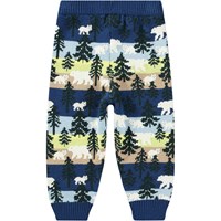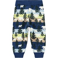 Bunt gestrickte Hosen aus Baumwolle/Wolle für die Kleinen. Die Hosen haben Rippbündchen an der Taille und den Beinen sowie ein Allover-Muster mit Eisbären und Tannenbäumen.