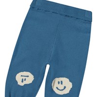 Gestrickte Hosen aus Öko-Baumwolle für die Kleinen. Die Hosen haben Rippbündchen an der Taille und den Beinen, die für eine bequeme Passform sorgen. Gestrickt in Blau und verziert mit lächelnden Gesichtern auf den Knien. Kombinieren Sie sie mit einer passenden Strickjacke für einen kompletten Look.