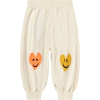 Weiße Strickhosen für die Kleinen aus Bio-Baumwolle mit Herzen. Sie sind weich und bequem mit elastischen Rippbündchen an Taille und Knöcheln, die für eine gute und flexible Passform sorgen.