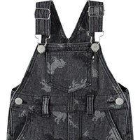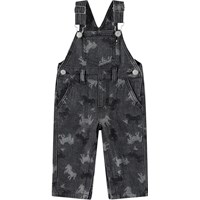 Latzhosen aus Öko-Baumwolle für die Kleinen. Die Latzhosen haben verstellbare Träger, eine kleine Vordertasche auf der Brust sowie Taschen an den Seiten und hinten. An den Seiten befinden sich Knöpfe, die das Anziehen erleichtern. Die Latzhosen sind dunkelgrau mit Jacquard-gewebten Pferden.