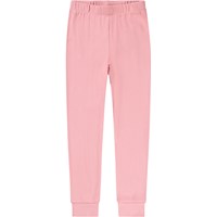 Pyjama-Set aus Öko-Baumwolle mit Rosenmuster. Die Hose hat einen elastischen Bund und gerippte Bündchen an den Knöcheln. Das Oberteil hat einen runden Ausschnitt und einen aufgedruckten Smiley auf der Vorderseite. Der Druck zeigt ein großes, weißes, gespraytes Lächeln.