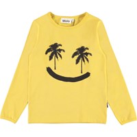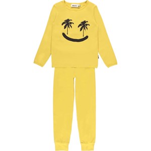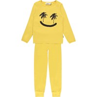 Luve ist ein gelbes Nachtset mit einem schwarzen Palmen-Smiley auf dem Bauch.