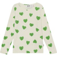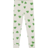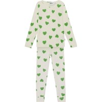 Hellgrüne Nachtwäsche mit Allover-Print aus lächelnden grünen Graffiti-Herzen aus Öko-Baumwolle. Die Nachtwäsche ist zweiteilig und besteht aus einer Langarmshirt mit Rundhalsausschnitt und einer Leggings mit Gummizug in der Taille.