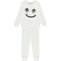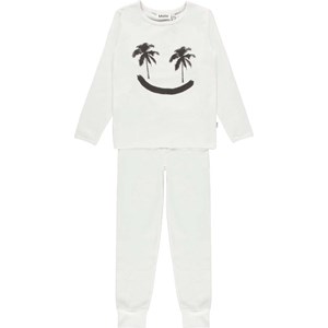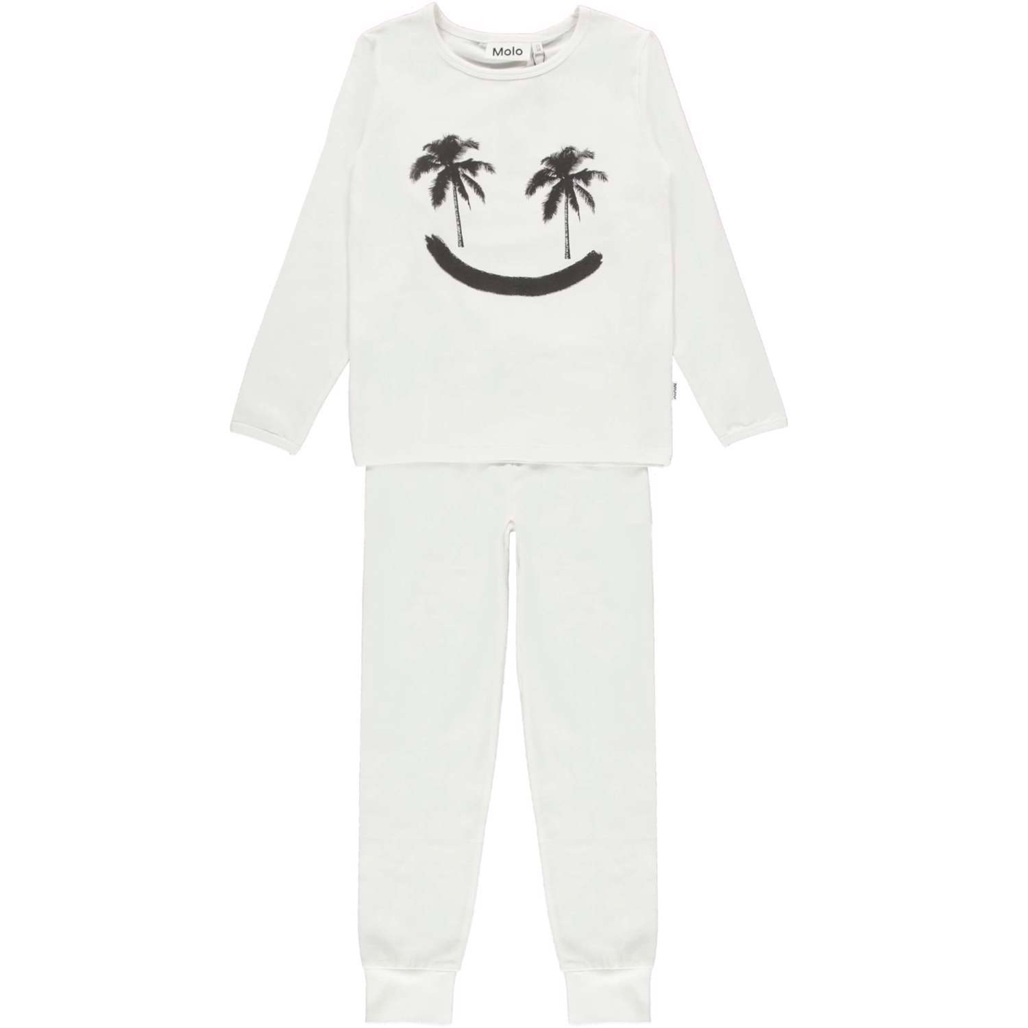 Luve ist ein weißes Nachtset mit einem schwarzen Palmen-Smiley auf dem Bauch.