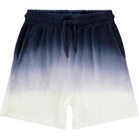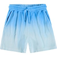Hellblaue, knielange Shorts mit Dip-Dye-Effekt, aus schnell trocknendem Bio-Baumwollfrottee. Sie haben eine lockere Passform, einen elastischen Bund mit Kordelzug, Seitentaschen und eine einzelne Gesäßtasche. Ideal für Strand und Pool.
