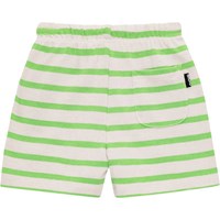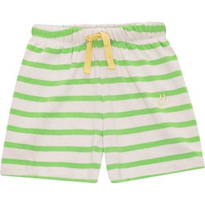 Gestreifte grün- und sandfarbene Shorts für die Kleinen aus weichem Öko-Baumwolljersey. Die Shorts haben eine lockere Passform mit Gummizug und Kordelzug in der Taille, wodurch sie leicht angepasst werden können und gut sitzen. Auf der Vorderseite ist passend zur Spitze ein kleines gelbes lächelndes Gesicht aufgestickt.