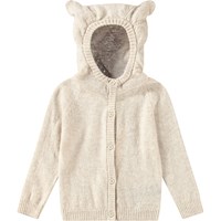 Hellgrauer Woll-/Kaschmirpullover mit Kapuze und Knöpfen vorne. Perfekt für die Kleinen. Der Pullover hat eine niedliche Kapuze mit Teddybärenohren und gerippte Bündchen an den Ärmeln und am Bund.