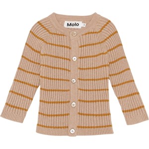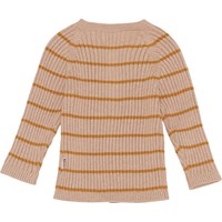 Bendix ist eine rosafarbene Strickjacke in Rippqualität mit braunen schmalen Querstreifen. Die Strickjacke hat einen Rundhalsausschnitt. Kombinieren Sie Bendix mit der passenden Strickhose.
