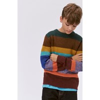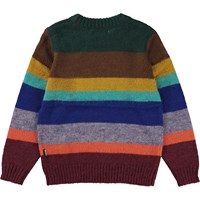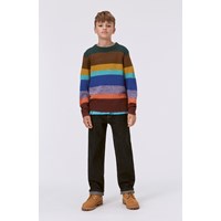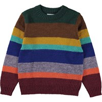 Strickpullover mit Streifen in vielen Farben. Die Streifen sind in verschiedenen Breiten und die Farben variieren von Braun und Dunkelgrün bis lila Melange. Dieser Pullover ist aus einer schönen und weichen Alpaka-Wollmischung gefertigt, die ihn perfekt für die kälteren Tage macht. Der Pullover hat einen Rundhalsausschnitt mit Rippstrick, lange Ärmel und Rippbündchen an Ärmeln und Hüfte.
