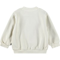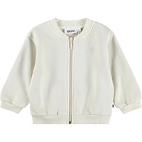 Weißes Sweatshirt für die Kleinen aus Bio-Baumwolle. Das Sweatshirt hat einen Frontreißverschluss, gerippte Kanten an den Ärmeln, am Hals und am unteren Rand sowie eine bequeme Passform, die Bewegungsfreiheit ermöglicht.