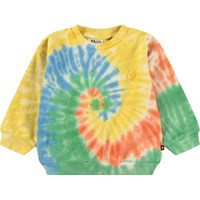 Mehrfarbiges Batik-Sweatshirt für die Kleinen aus Bio-Baumwolle mit gerippten Kanten. All unsere Batikarbeiten sind handgefertigt, wodurch einzigartige Muster entstehen, die von Stil zu Stil variieren.
