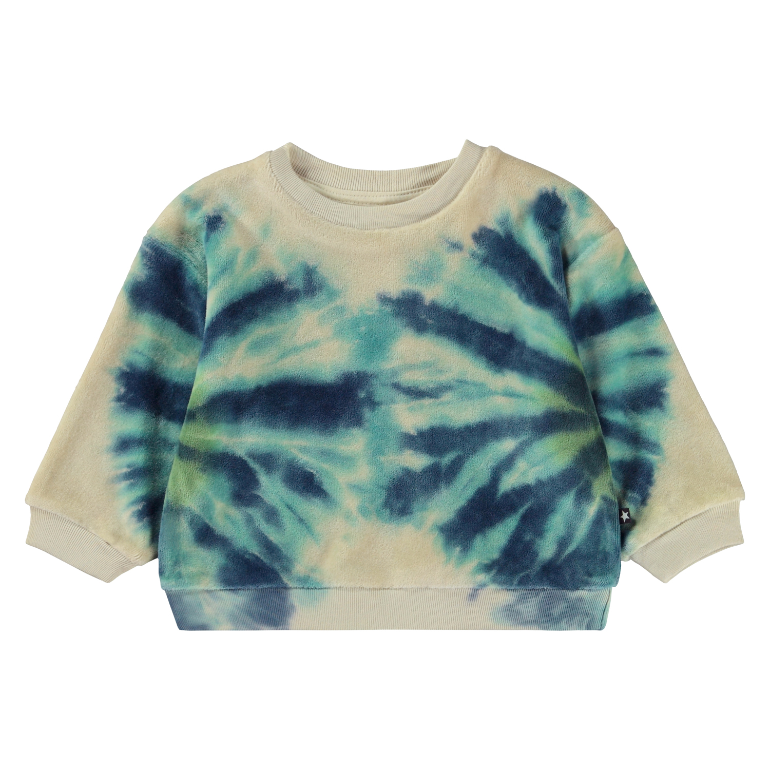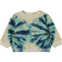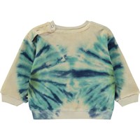 Beigefarbiges Langarmsshirt für die Kleinen mit Placement-Batikdruck in verschiedenen Blautönen. Der Druck besteht aus zwei Sonnen in Orangetönen, eine auf jeder Seite. Dieses Shirt besteht aus 100% Baumwolle, hat einen Rundhalsausschnitt mit Rippbündchen, Raglanärmel, Rippbündchen an Ärmeln und Hüfte sowie Druckknöpfe am Halsausschnitt, sodass das Shirt leicht an- und auszuziehen ist. Kombinieren Sie evt. das Shirt mit der Hose, Simeon, in der gleichen Farbe und Qualität, für das perfekte Set.