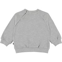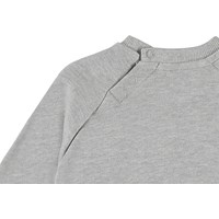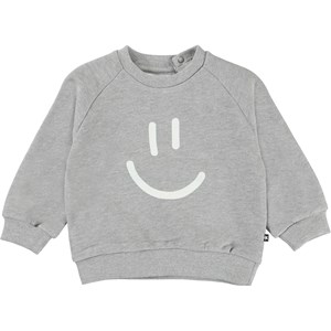 Disc ist ein graues Baby-Sweatshirt mit einem Smiley-Print auf der Vorderseite. Das Sweatshirt wird im Nacken geknöpft. Kombinieren Sie die Bluse mit der passenden Babyhose.