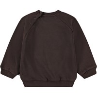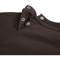 Dunkelbrauner Pullover für die Kleinen aus weicher Öko-Baumwolle mit einem gestickten Teddybären-Gesicht auf der Vorderseite. Der Pullover hat Raglanärmel, gerippte Abschlüsse an Taille und Ärmeln sowie einen Rundhalsausschnitt mit zwei Druckknöpfen am Hals, um das An- und Ausziehen zu erleichtern. Kombinieren Sie ihn mit der passenden Hose für ein komplettes Set.
