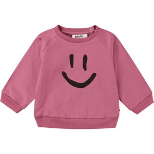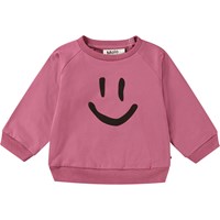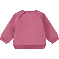 Rosa Sweatshirt für die Kleinen aus Öko-Baumwolljersey mit einer gebürsteten Innenseite, was es weich und warm zu tragen macht. Das Sweatshirt hat Raglanärmel, gerippte Bündchen an Taille und Ärmeln sowie einen Rundhalsausschnitt mit zwei Druckknöpfen hinten, was das An- und Ausziehen erleichtert. Auf der Vorderseite des Sweatshirts befindet sich ein schwarzer Aufdruck eines großen Lächelns.