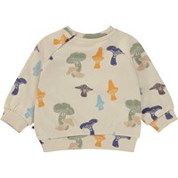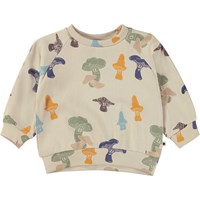 Offwhite-Langarmsshirt im Allover-Print für die Kleinen. Der Druck besteht aus niedlichen kleinen handgezeichneten Cartoon-Pilzen in verschiedenen Farben. Dieses Shirt besteht aus 100% Baumwolle, hat einen Rundhalsausschnitt mit Rippbündchen, Raglanärmel, Rippbündchen an Ärmeln und Hüfte sowie Druckknöpfe am Halsausschnitt, sodass das Shirt leicht an- und auszuziehen ist. Kombinieren Sie evt. dieses Shirt mit der Hose Simeon im gleichen Aufdruck für das perfekte Set.