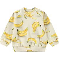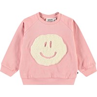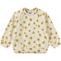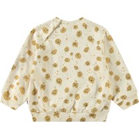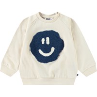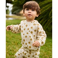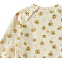 Weicher Pullover für die Kleinen aus Öko-Baumwolle. Der Pullover hat Raglanärmel, gerippte Abschlüsse und einen runden Ausschnitt mit einem Knopfverschluss hinten auf der Schulter, was das An- und Ausziehen erleichtert. Dieser Pullover ist beige mit bedruckten Gesichtern. Kombinieren Sie ihn mit der passenden Hose für ein komplettes Outfit.