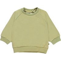 Disc ist ein grünes Baby-Sweatshirt. Das Sweatshirt wird im Nacken geknöpft. Kombinieren Sie das Sweatshirt mit der passenden Babyhose.