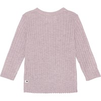 Georgette ist eine wunderschöne Rippstrick-Babyjacke mit Kaschmir in Helllila. Der Cardigan hat schöne Perlmuttknöpfe bis unten und kann mit einer passenden Rippstrickhose kombiniert werden.