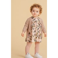 Georgette ist eine wunderschöne Rippstrick-Babyjacke mit Kaschmir in Beige. Der Cardigan hat schöne Perlmuttknöpfe bis unten und kann mit einer passenden Rippstrickhose kombiniert werden.