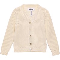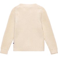 Klassischer cremefarbener Strick-Cardigan aus Öko-Baumwolle. Der Cardigan besteht aus einem schönen Rippstrick mit Rippkanten an den Ärmeln, an der Hüfte sowie am Hals und am Knopfverschluss. Der Cardigan hat eine gute Passform und einen exklusiven Look mit den schönen Perlmuttknöpfen.