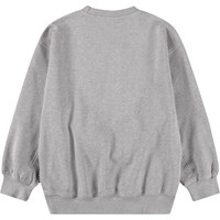 Graues Melange-Sweatshirt aus weicher, biologischer Baumwolle mit Rundhalsausschnitt und gerippten Kanten an den Ärmeln, am Hals und am Saum. Das Sweatshirt hat eine übergroße, lockere Passform mit einer weichen Stickerei einer lächelnden Nummer 11 auf der Vorderseite.