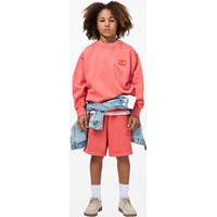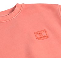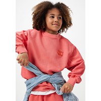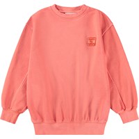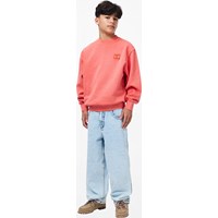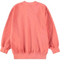 Rotes Sweatshirt aus weicher, biologischer Baumwolle mit Rundhalsausschnitt und gerippten Kanten an den Ärmeln, am Hals und am Saum. Das Sweatshirt hat eine übergroße, lockere Passform mit dem kleinen Text 'Don't be square' auf der Brust gestickt.