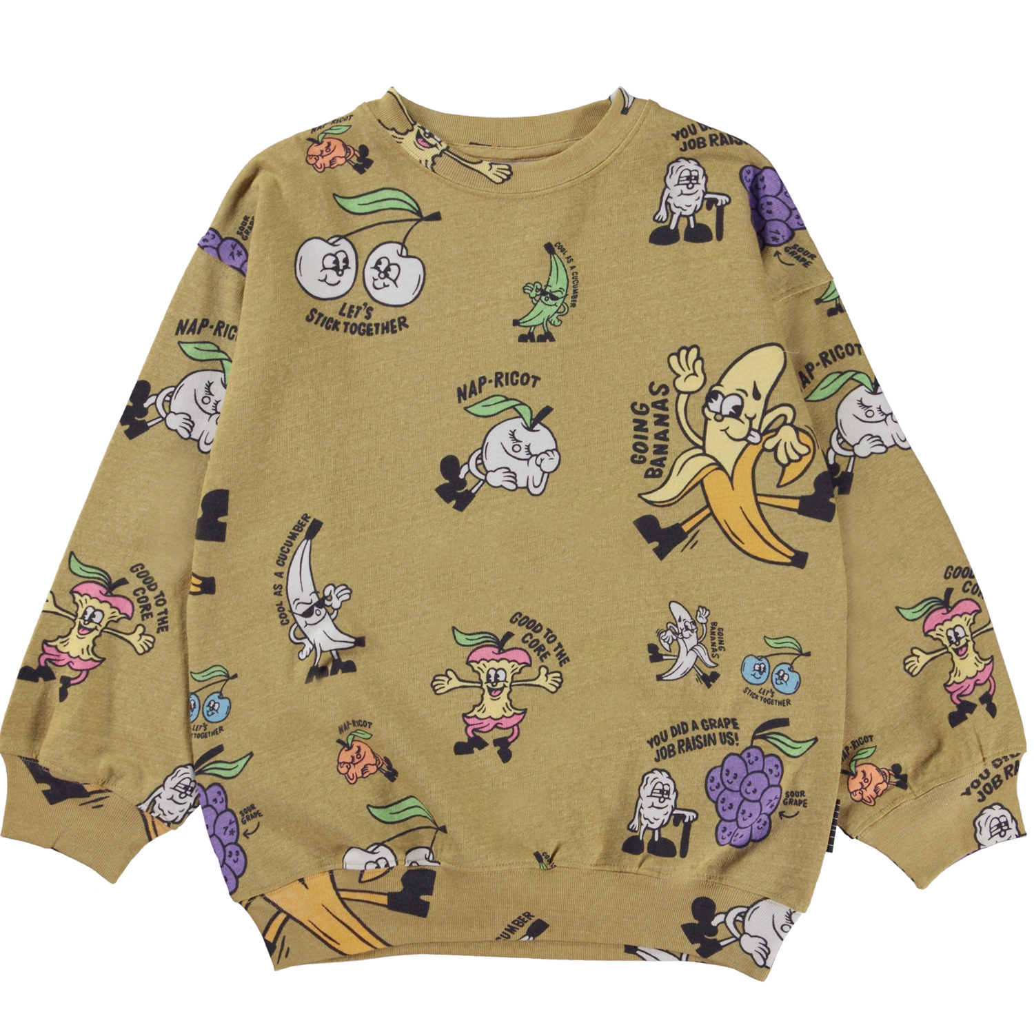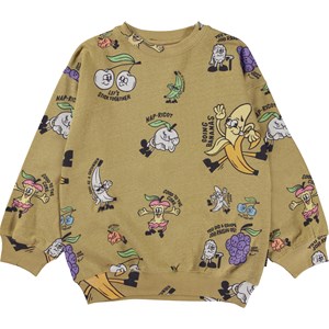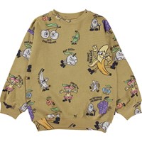 Mar ist ein grünes Unisex-Sweatshirt mit einem Aufdruck aus lustigen Früchten. Das Sweatshirt hat eine gute Länge. Kombinieren Sie das Sweatshirt mit passenden Shorts.