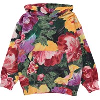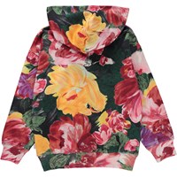 Grüner Hoodie mit großem floralem Allover-Print in Pink- und Gelbtönen. Der Druck besteht aus wunderschönen und lebendigen handgemalten Blumen und wenn Du genau hinsiehst, kannst Du Pinselstriche erkennen. Dieser Hoodie besteht aus 100% Baumwolle, hat eine Kängurutasche, Rippbündchen an Ärmel und Hüfte und eine lockere Passform. Kombinieren Sie evt. dieses Sweatshirt mit der Hose Adan im gleichen Aufdruck für das perfekte Set.