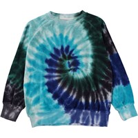Blaues Sweatshirt mit Batikdruck in verschiedenen Blautönen. Dieses Sweatshirt besteht aus 100% weichem Baumwollvelours, hat einen Rundhalsausschnitt mit geripptem Saum, Raglanärmel, Rippbündchen an Ärmeln und Hüfte und eine reguläre Passform. Kombinieren Sie evt. das Sweatshirt mit der Hose Alvar im gleichen Aufdruck für das perfekte Set.