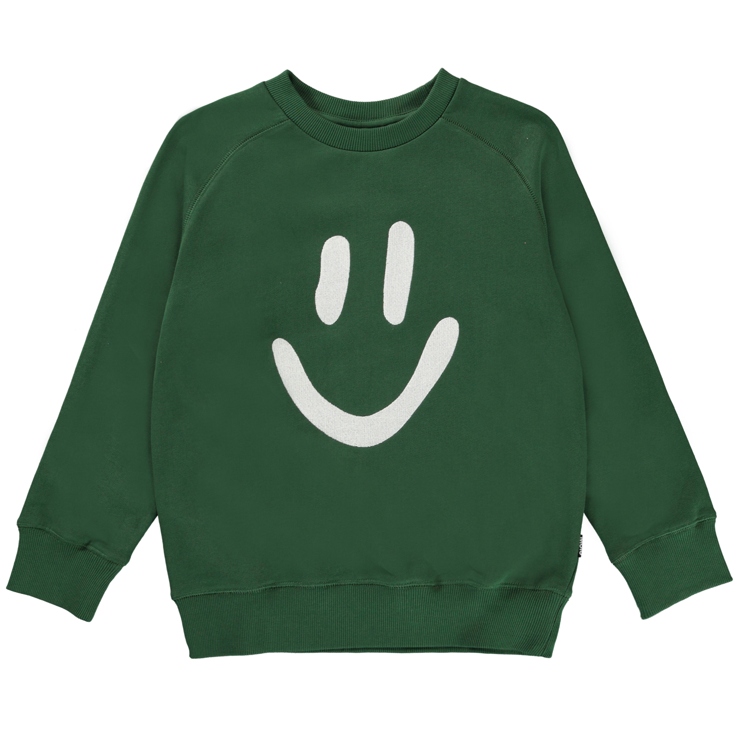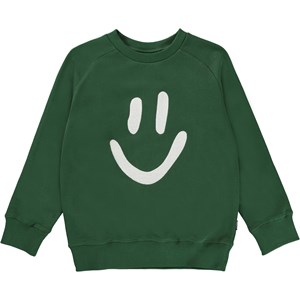 Mike ist ein grünes Unisex-Sweatshirt mit einem Smiley-Print auf der Vorderseite.
