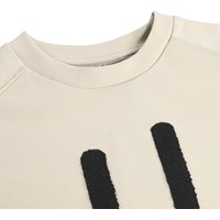 Beiges Sweatshirt aus weicher, biologischer Baumwolle mit Raglanärmeln und gerippten Kanten am Hals, an den Ärmeln und am Saum. Das Sweatshirt hat eine normale und entspannte Passform mit einer schwarzen und weichen lächelnden Stickerei auf der Vorderseite.